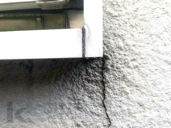開口クラックは、窓や戸などの開口部周辺に入るクラックで、斜め方向にクラックが発生します。開口部には力が集中しやすいので、建物にかかる負荷によって発生するクラックです。