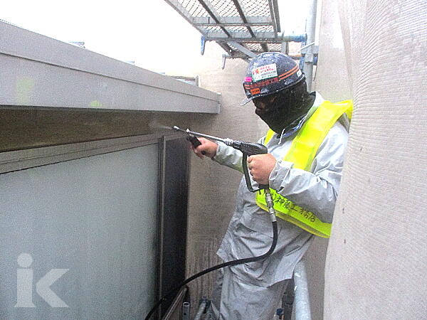 長年の汚れ、ほこり等を高圧洗浄機の強い水圧で洗い流します。