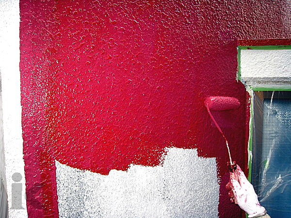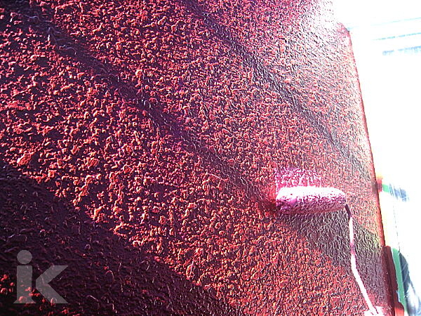下塗り材の塗装を行った後に、中塗りに赤色系の塗料を塗装します(仕上げの色が赤色系の為、中塗りも赤色系です)。
