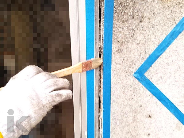 古いコーキングの撤去が終わったら、新しく打ち直すコーキングの密着をよくするために、プライマーを塗ります。