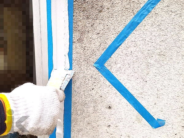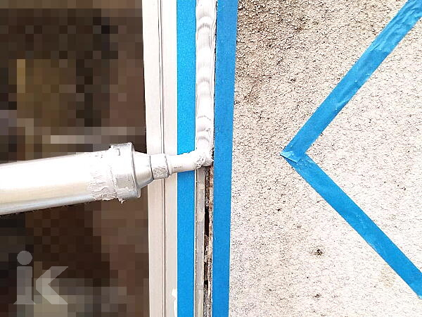 プライマー塗りが終わりプライマーが乾いたら、雨水の侵入を防ぐため隙間なくコーキングを打ちます。