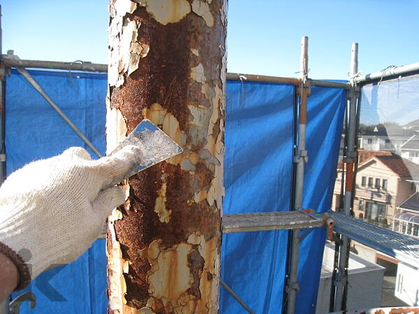 ケレン作業とは、汚れやサビ、旧塗膜を落とし塗装する面の下地を整える作業のことです。