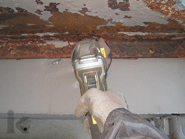 サビた部分をケレン道具でできる限り削り、ペーパー等で素地を整えていきます。