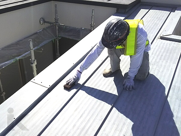 錆などがみられる鋼板屋根材の再塗装には、防錆効果(錆止め効果)のある下塗り塗料を使用します。